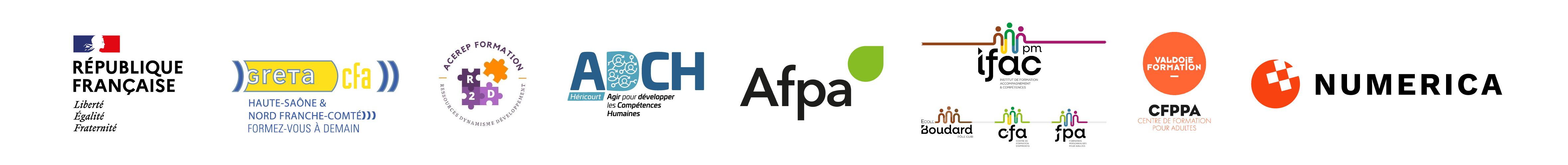 Pour répondre à la demande de la Région sur l’aire urbaine, le groupement s’est constitué avec 7 organismes dont le GRETA Haute-Saône Nord Franche-Comté est le porteur. ACEREP R2D et ADCH situés sur le territoire d’Héricourt, l’ AFPA et le CFPPA sur le bassin Belfortain, le CFA Montbéliard et le GRETA HSNFC.